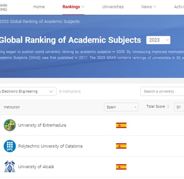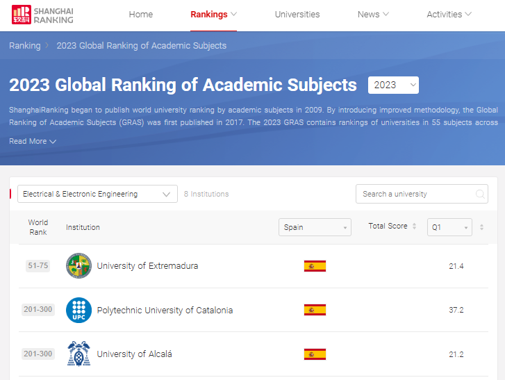 La Universidad de Extremadura obtuvo en 2023 el primer puesto entre las universidades españolas en la categoría de Ingeniería Eléctrica y Electrónica del Ranking de Shanghai.