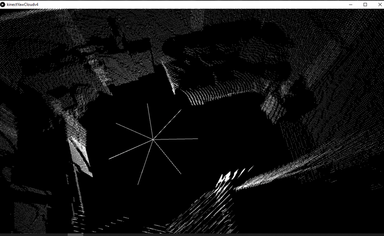 I placed an accelerometer connected to an arduino on the Kinect 360. By taking several depth images in different directions and calculating the relative position in space from the accelerometer data I was able to generate a 3D model of the environment.